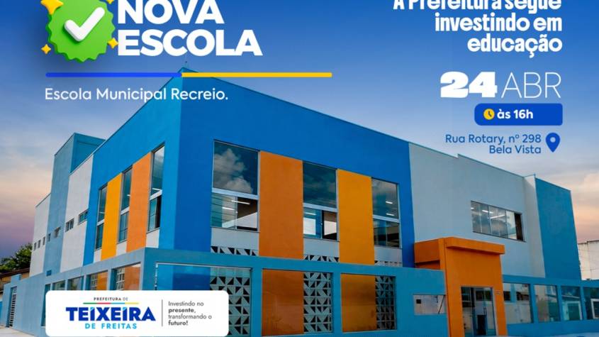 A Prefeitura de Teixeira de Freitas entrega, no próximo dia 24, às 16h, as novas instalações da Escola Municipal Recreio. A unidade, que funcionava na comunidade há duas décadas, foi inteiramente reconstruída para substituir a estrutura anterior por um prédio planejado do zero. Com capacidade para atender cerca de 450 estudantes do 1º ao 5º ano do Ensino Fundamental, a obra foca na ampliação de vagas e na modernização do ambiente pedagógico, integrando recursos de acessibilidade e climatização para garantir condições adequadas de ensino na rede pública municipal.